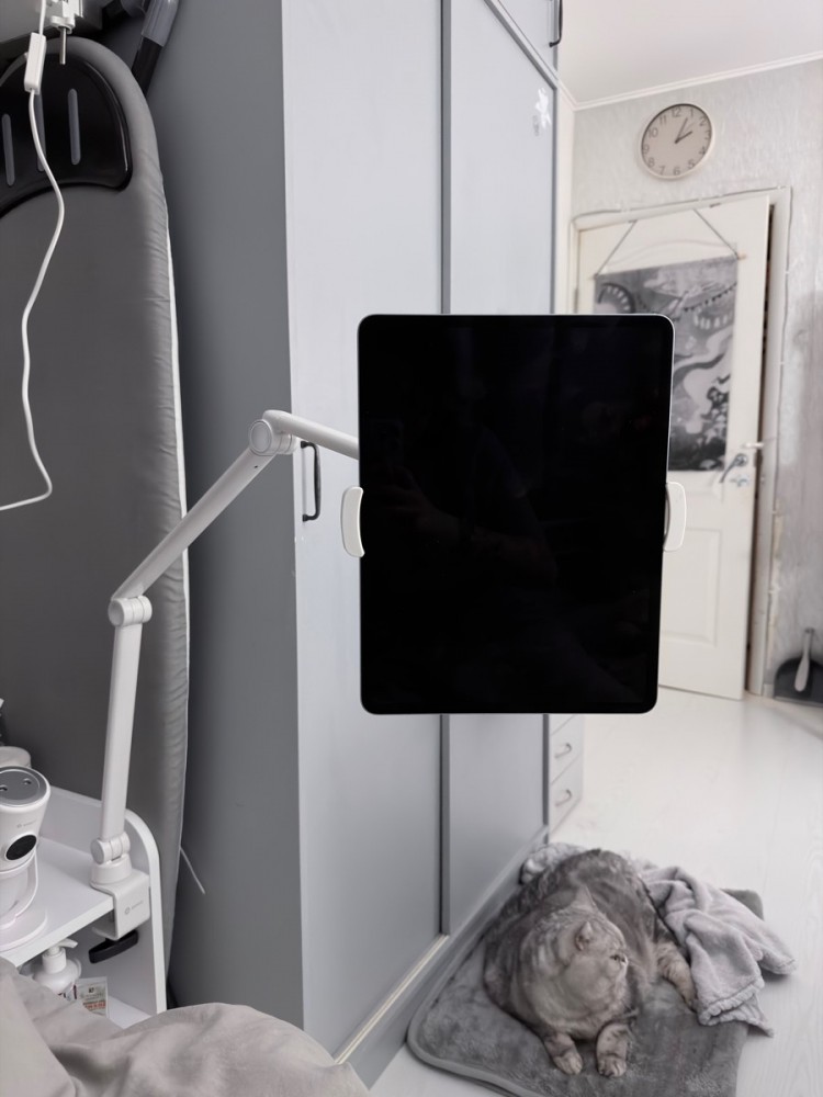 Секции соединены между собой и с основанием шарнирами. Усилие вращения каждого шарнира регулируется комплектным шестигранным ключом. При установке углов между секциями и между основанием держателя нужно руководствоваться пониманием того, что сильно наклоненная вперед или назад штанга создает мощный рычаг благодаря своей длине и держатель в таком положении с установленным планшетом испытывает существенные нагрузки на шарнирные соединения. Устанавливайте конфигурацию исходя из этого, можно ориентироваться на варианты, изображенные на картинках.