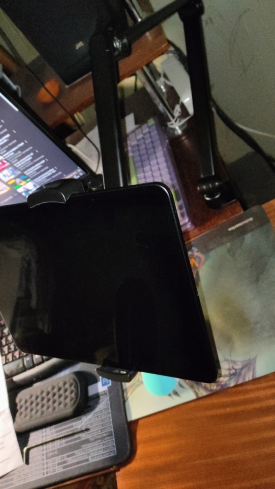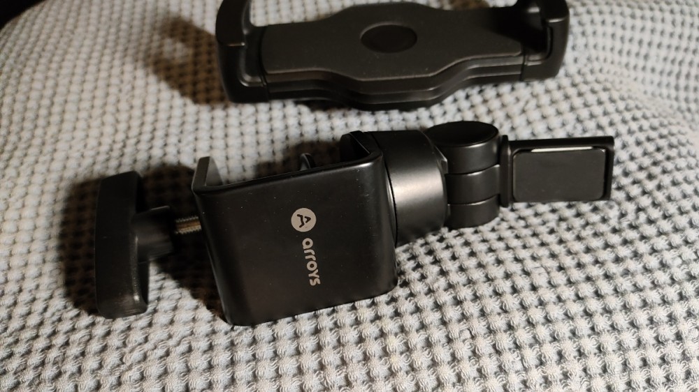 Зажим девайса выполнен из пластика, он соединен со штангой шаровым шарниром, поэтому можно устанавливать любой угол обзора экрана.