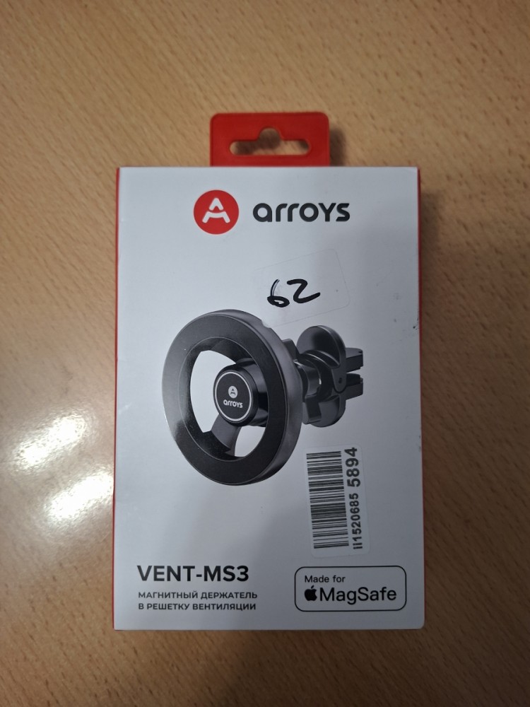 Новая модель от Arroys 2024 г- Vent-MS3 предназначен для использования с телефонами или чехлами с креплением Magsafe. Встроенное в держатель магнитное кольцо обеспечивает крепление телефона на держателе. Фиксаторы MagSafe устанавливаются на iPhone, начиная с серии 12 и , также, встречаются чехлы с таким креплением. В обоих случаях телефон можно устанавливать на держатель без дополнительных приспособлений. В держатель вмонтирован центрирующий магнит, ответная часть к которому находится в iPhone. Он дает возможность выровнять и зафиксировать iPhone по вертикали.