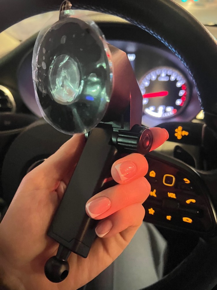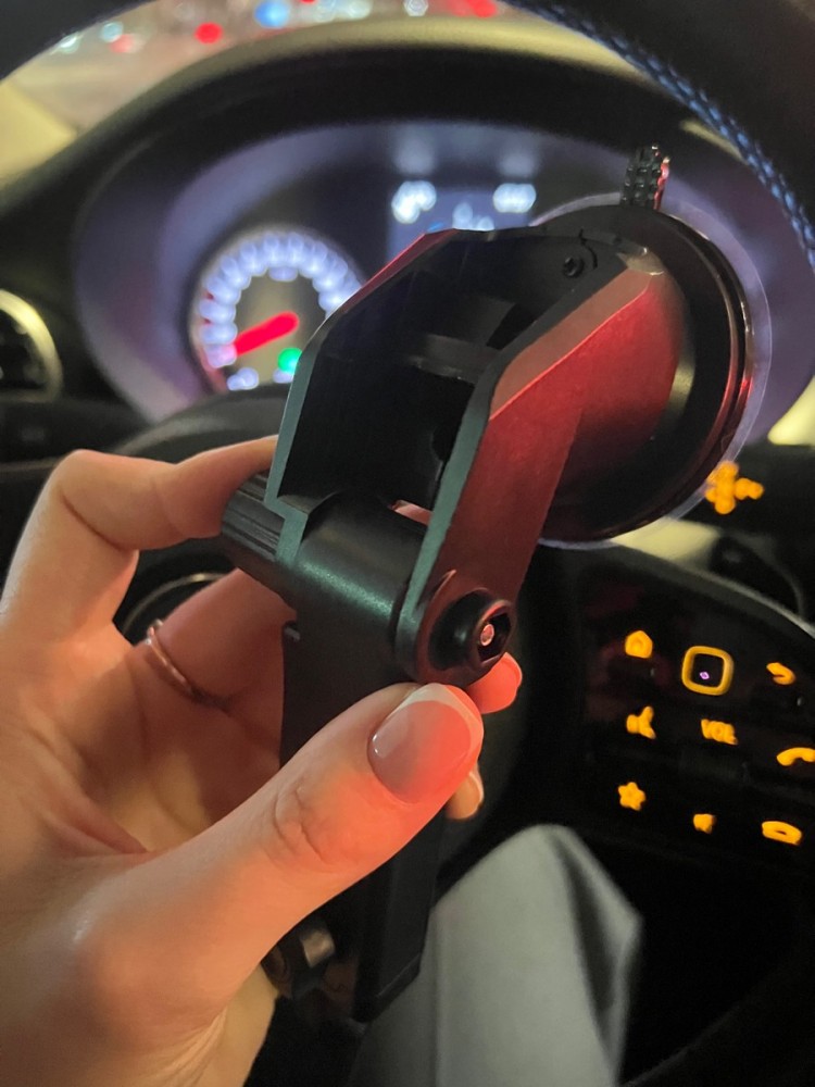 Липкая гелевая присоска пристаёт к поверхности торпедо или лобовому стеклу и не даёт падать держателю при агрессивной езде, резком торможении и на лежачих полицейских