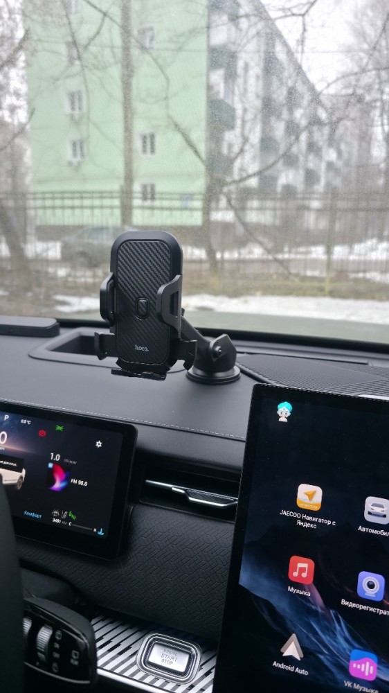 Hoco CA76 Touareg one-touch center console car holder - универсальный автомобильный держатель для телефонов iPhone. Samsung, Huawei, Xiaomi и др. Устанавливается на приборную панель и лобовое стекло с помощью присоски