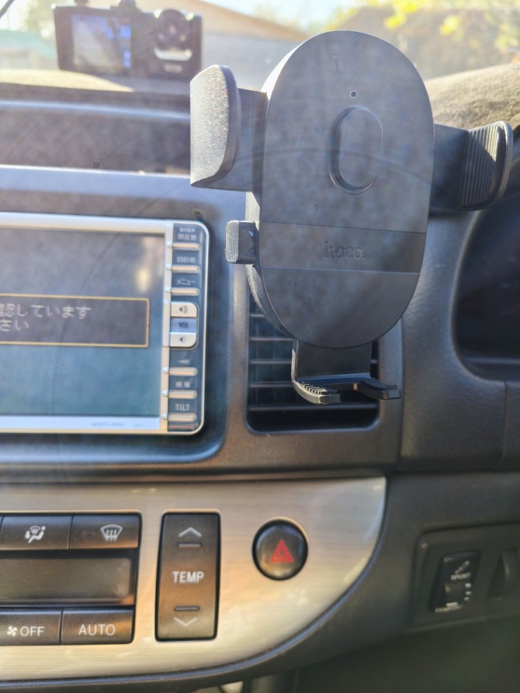 Автомобильный держатель для телефона Hoco H18 Mighty устанавливается в воздуховод с решёткой из прямоугольных пластин (круглые не подходят)