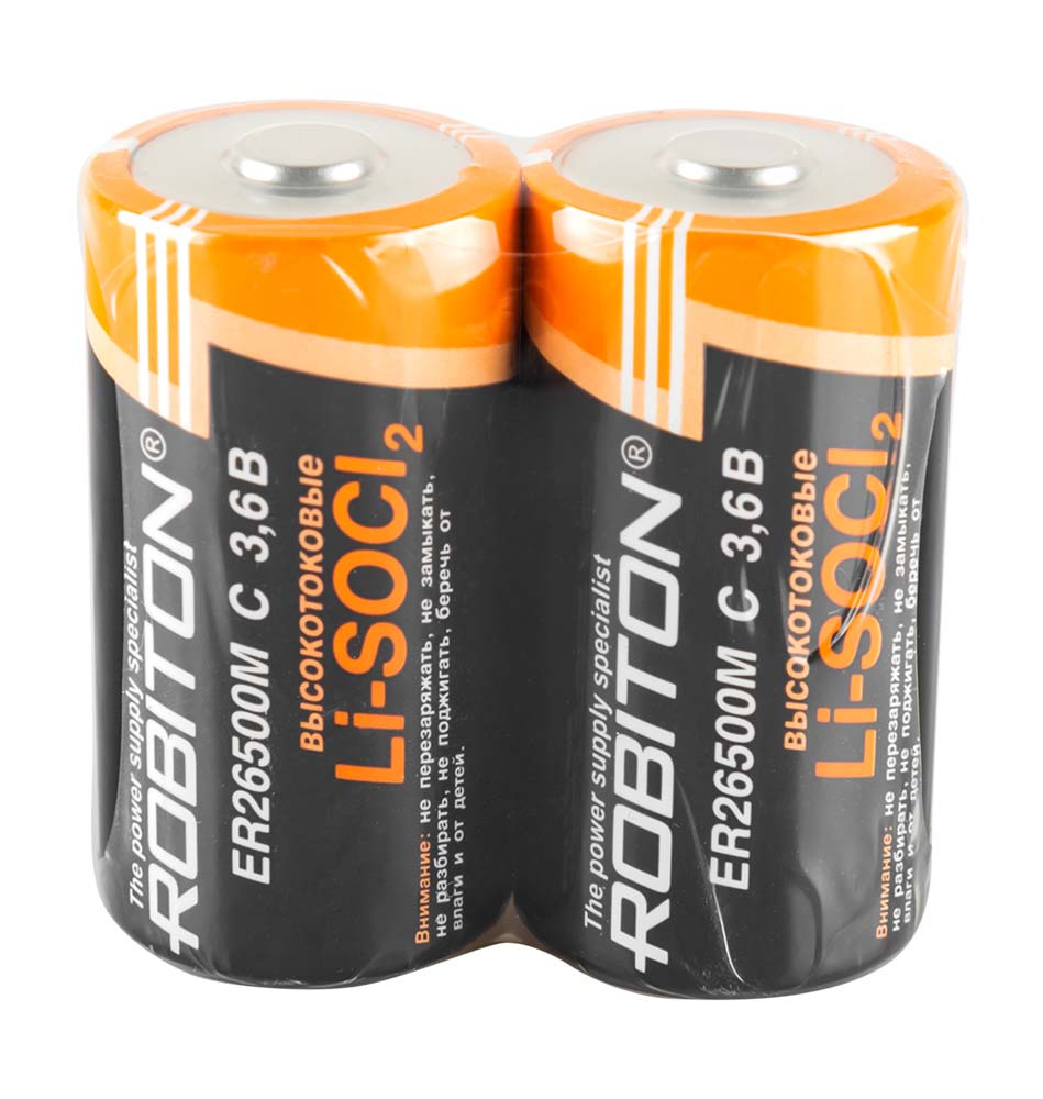 Robiton ER 26500M (C) - это одноразовый, литий-тионилхлоридный (Li-SOCl₂) элемент питания типоразмера С напряжением 3.6В