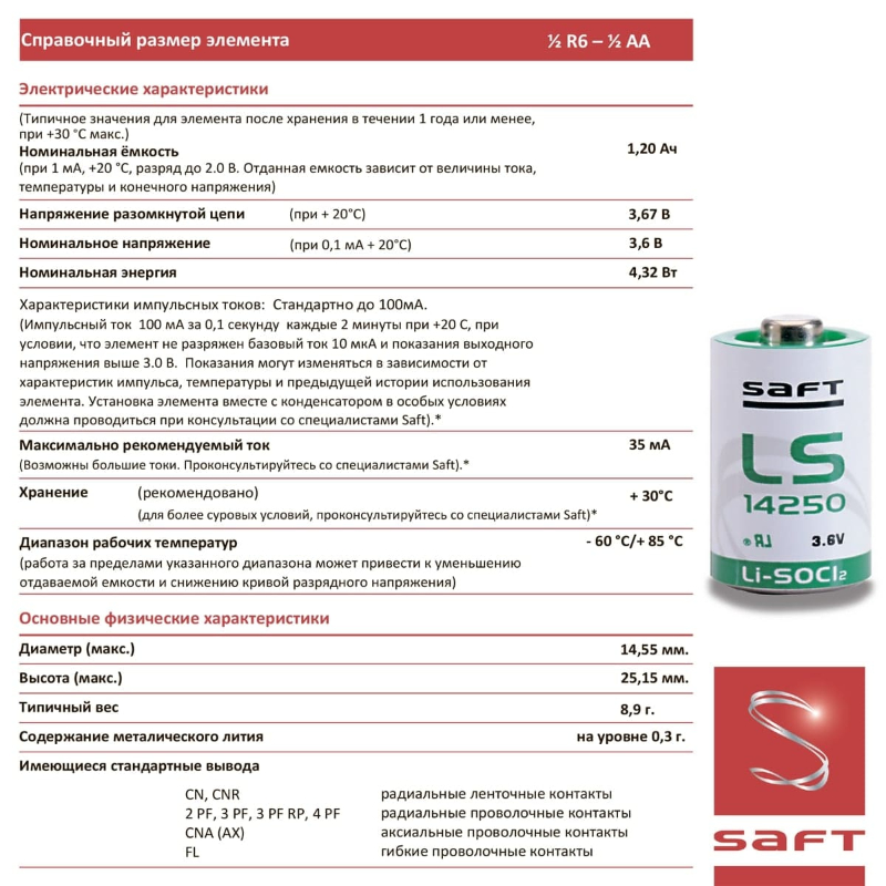 Saft LS 14250 (1/2AA) 5шт.