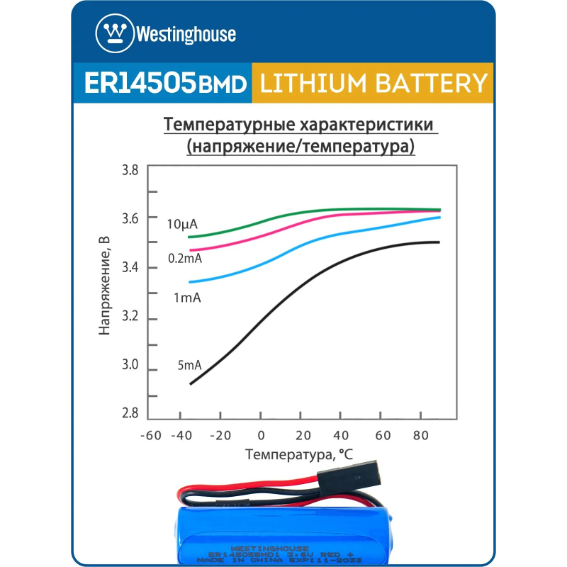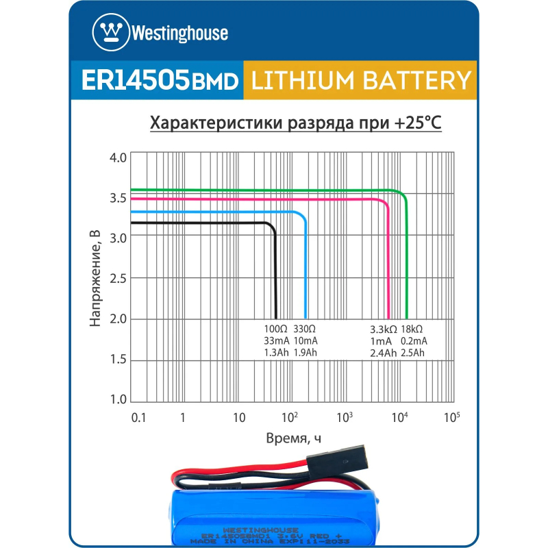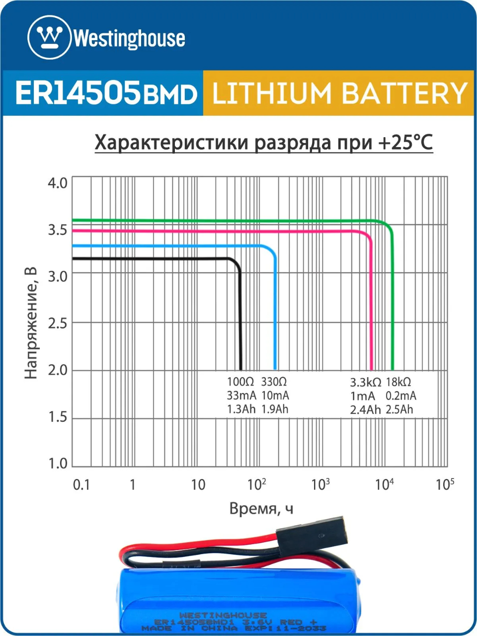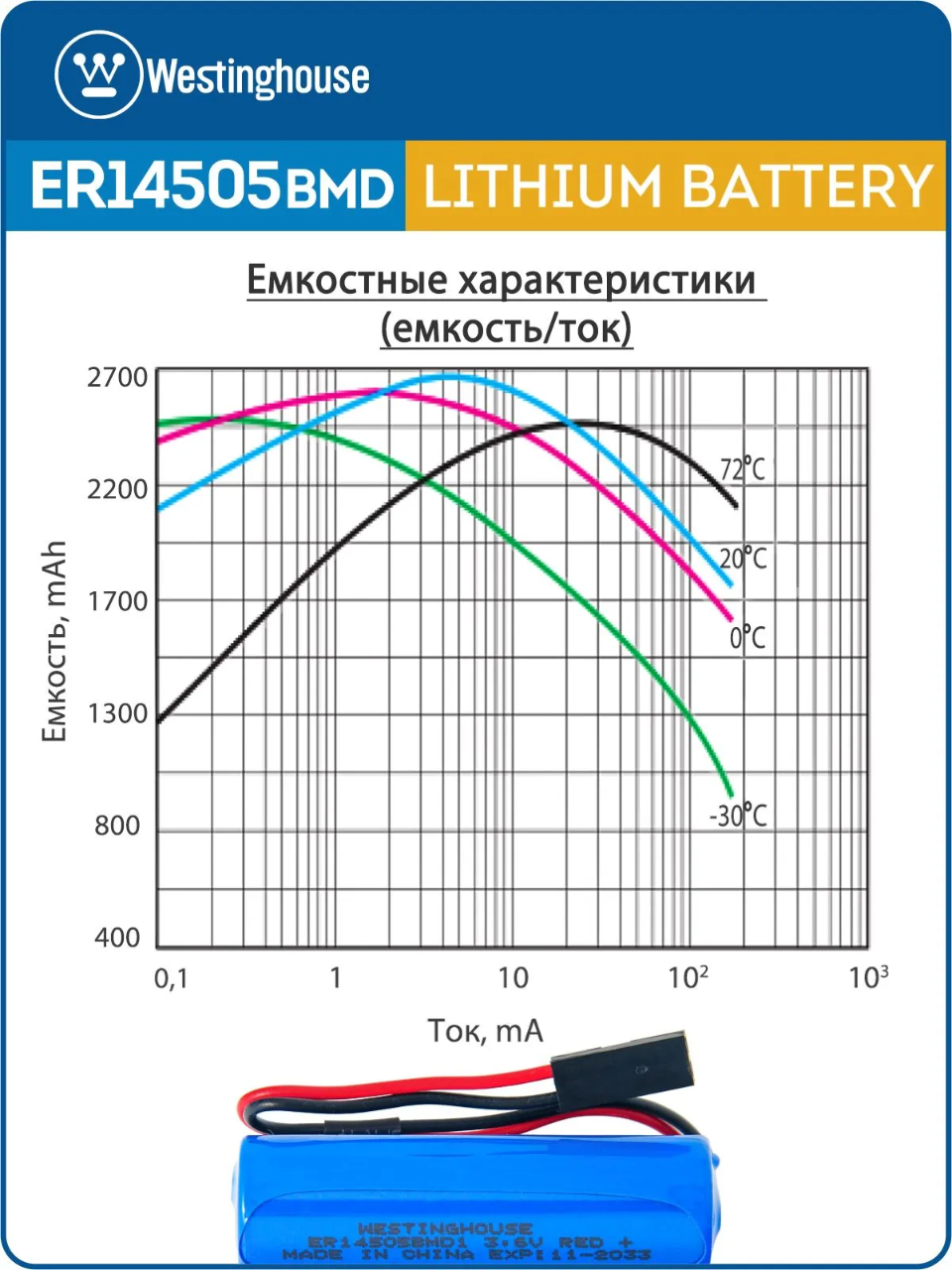 батарейки 3.6 В с коннектором Dupont 2,54 (BLS-2) Westinghouse ER 14505BMD1 (AA) connector 5шт.