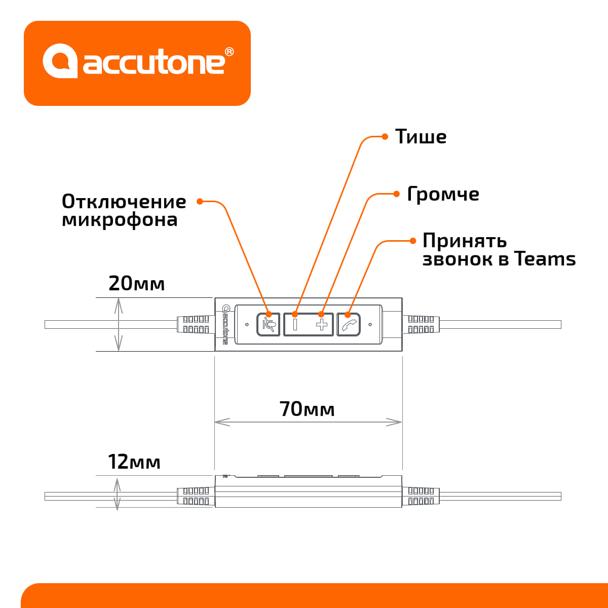 На пульте расположен регулятор громкости, кнопка временного отключения микрофона и кнопка ответа на вызов, совместимая только с Teams